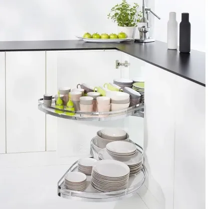 Space in the corners, especially in L and U-shaped kitchens, is often wasted because it's hard to reach. To make sure every inch of your kitchen is used well, we use corner units.